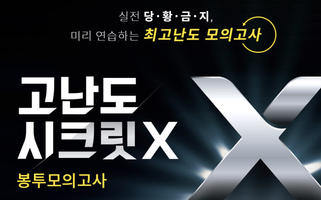 최고난도 모의고사 고난도 시크릿X 답지 총 1회 2회 3회 답안지로 구성됩니다. 전체적으로 푼 후 채점을 하는것이 일단 큰 점수를 보기에 좋은 것같습니다. 채점 후 오답노트를 해보시는것도 좋은 방법입니다.